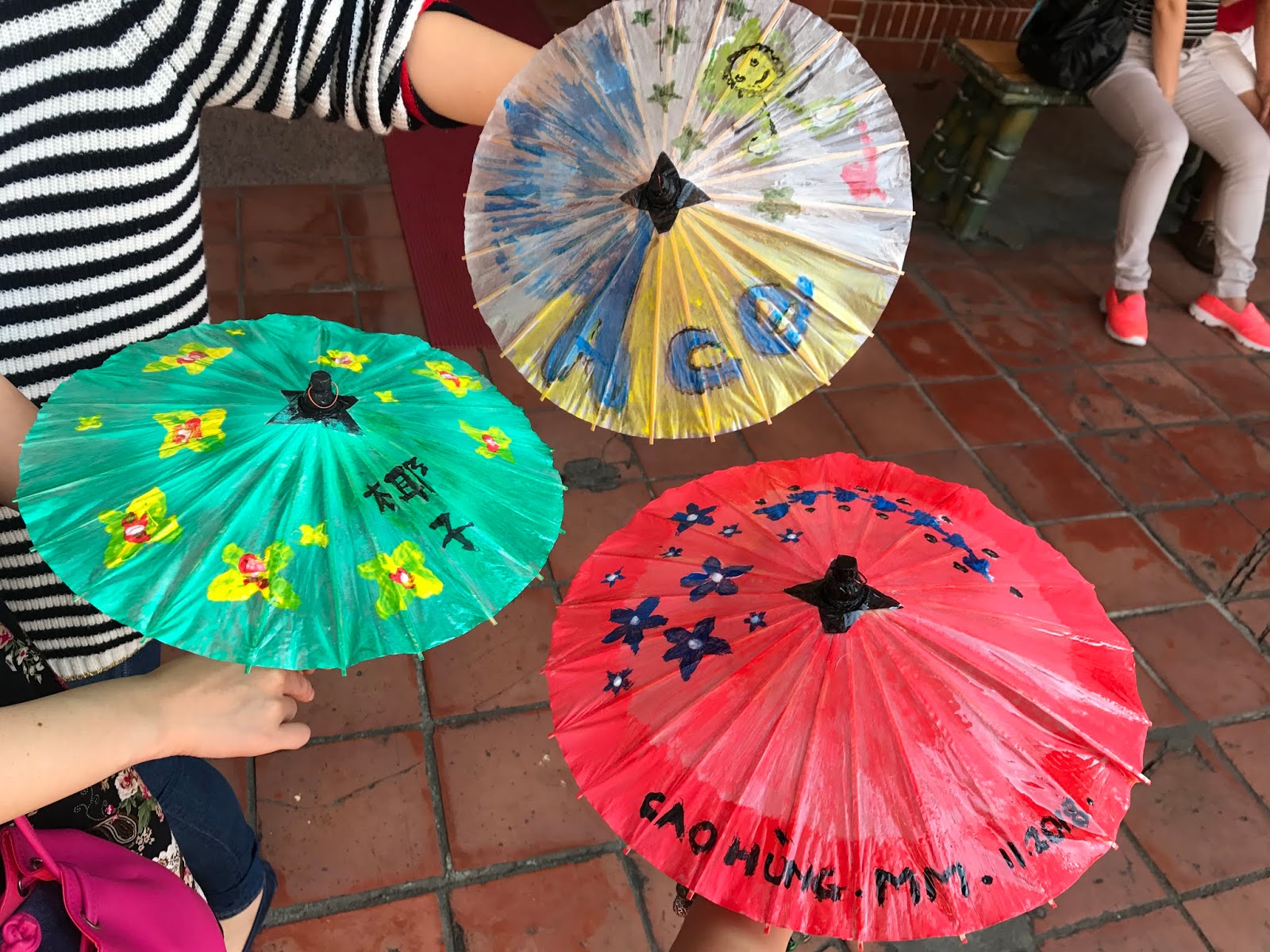 Người quen của cô bạn người Trung Quốc dẫn bọn mình đến một làng cổ cách Cao Hùng 40p ô tô, có các dịch vụ trải nghiệm văn hoá, có thể tham gia làm gốm, vẽ quạt giấy, vẽ tranh cát. Bác người quen tặng tụi mình mỗi đứa 1 suất vẽ dù. Khá vui, nhưng do được tặng nên chả biết giá.